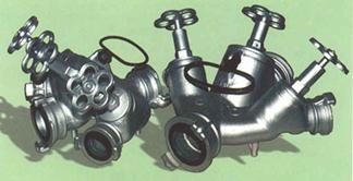 В зависимости от числа выходных штуцеров и условного диаметра входного штуцера различают следующие типы разветвлений: трехходовые РТ-70 и РТ-80 и четырехходовые РЧ-150. Разветвление состоит из корпуса, имеющего один входной и три-четыре выходных штуцера, ручки для переноски, запорных вентилей с тарельчатыми клапанами, маховичками, шпинделями и сальниковыми уплотнениями и муфтовых соединительных головок.