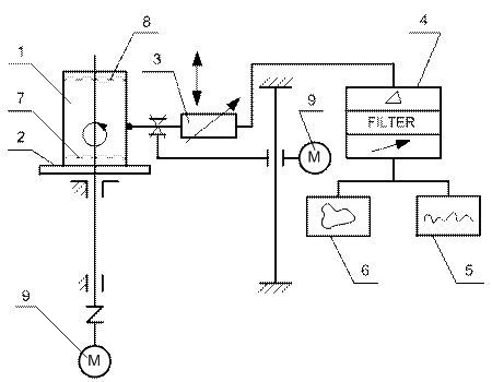 3 – линейный измерительный преобразователь; 4 – электронный блок, включающий усилитель, частотный фильтр и устройство отображения измерительной информации;