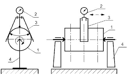 1) путем непрерывного измерения диаметров при вращении детали относительно двухточечного средства измерения (индикатора часового типа закрепленного в измерительной стойке, индикаторной скобы, рычажной скобы и др.);