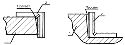 Рис. 3.55. Оценка отклонения от перпендикулярности плоскости относительно плоскости или цилиндра с помощью лекального угольника «на просвет»