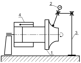 1 – контролируемая деталь; 2 – измерительная головка; 3 – штатив (стойка);