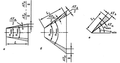 Для конусов, имеющих малые углы (при конусности С ≤ 1:3 или при значении угла конуса α ≤ 19о), практически АТD ≈ АТh (разность составляет не более 2 %). Для таких конусов принимают L ≈ L 1 и назначают допуск АТD, полагая что АТD ≈ АТh.