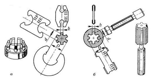 Рис. 3.114. Калибры для контроля шлицевых валов (а) и втулок (б)