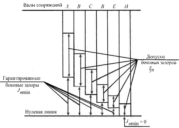 Рис. 3.116. Виды сопряжений, гарантированные боковые зазоры