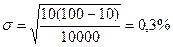 Это означает, что с вероятностью 68% (одно стандартное отклонение) можно утверждать, что результат лежит между 9,7 и 10,3%, а при допустимой вероятности 0,95 - между 9,4 и 10,6% (два