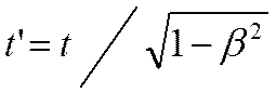 Время (T), наблюдаемое движущимся и неподвижным наблюдателями, будет отличаться. Для любого наблюдателя, движущегося относительно него, часы идут медленнее таких же часов, которые покоятся в его системе отсчета: