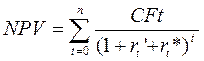 (учет риска в знаменателе формулы NPV посредством корректировки ставки дисконта)