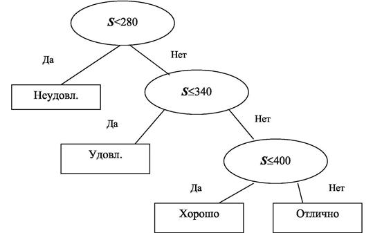 Составим дерево решения для нашего примера (рис. 5.2.1). Пусть база данных заполнена ответами и рассчитана сумма накопленных баллов S.