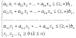 1) показатель эффективности L представляет собой линейную функцию, заданную на элементах решения x1, x2,…, xn;