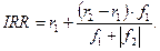 Для упрощенных расчетов используют метод секущей средней: а) определяют значение ставки сравнения (r1), при котором чистая текущая стоимость положительна (f1); б) определяют также подбором ставку сравнения (r2), при которой чистая текущая стоимость – отрицательное число (f2);