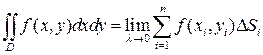, и этот предел не зависит ни от способа разбиения области на элементарные области, ни от выбора точек пунктуации, то он называется двойным интегралом от функции z=f (x,y)по области D и обозначается