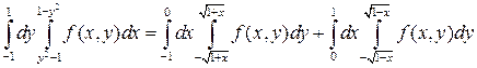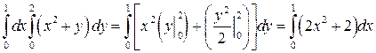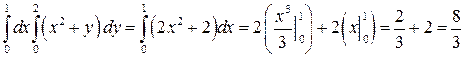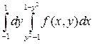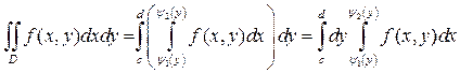 причем сначала вычисляется интеграл по переменной y (x - параметр), а полученный результат интегрируется по x.