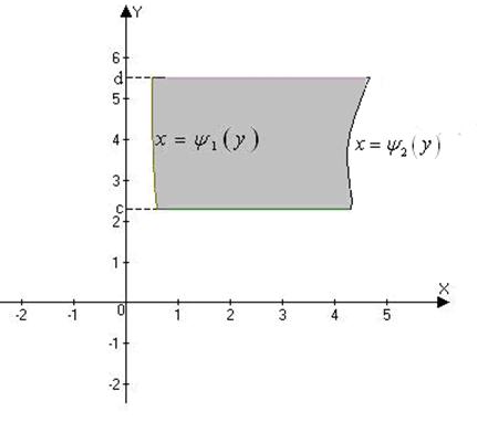 Аналогично, пусть область D ограничена снизу и сверху горизонтальными прямыми y=c, y=d, а слева и справа - кривыми