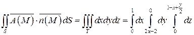 через полную поверхность S пирамиды T в направлении внешней нормали (непосредственно и по теореме Гаусса-Остроградского);