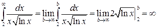 Следовательно, несобственный интеграл расходится. Тогда в силу интегрального признака Коши расходится и данный ряд.