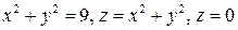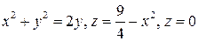 Задание 2. Найти объем тела, ограниченного данными поверхностями. Сделать чертежи данного тела и его проекции на плоскость Oxy.