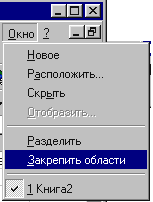 Далее необходимо обратиться к команде Окно и выбрать строку Закрепить области. Закрепление будет производиться левее и выше выбранной Вами ячейки.