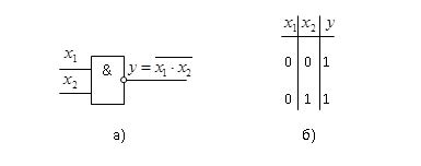 Условное изображение ЛЭ, реализующего функцию “штрих Шеффера”, приведено на рис. 8, а.