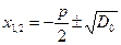 Формулы корней приведенного квадратного уравнения