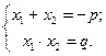 , взятому с противоположным знаком, а их произведение – свободному члену: