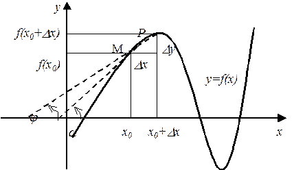 тангенс угла наклона секущей МР к графику функции (рис.10).