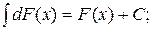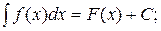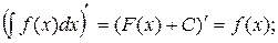 Неопределенным интегралом функции f(x) называется совокупность первообразных функций, которые определены соотношением: