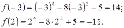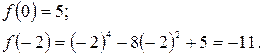 В интервал попадают точки с абсциссами 0; -2; 2. В точке с абсциссой 2 значение функции уже найдено, поэтому найдем ее значения в оставшихся точках: