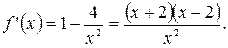 5) Производная положительна на промежутке x>2, следовательно, на этом промежутке функция возрастает. На интервале 0<x<2 производная отрицательна, следовательно, на этом интервале функция убывает.