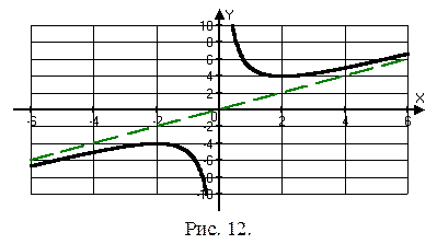 при x>0. График этой функции при x<0 строим с помощью симметрии относительно начала координат (рис.12).