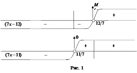Решение. Методом интервалов (рис. 1) находим интервалы знако-постоянства выражений