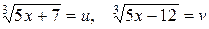 Уравнение вида (1) может быть также решено введением вспомогательных неизвестных, что в ряде случаев позволяет перейти от иррационального уравнения к системе рациональных уравнений, являющейся его следствием.