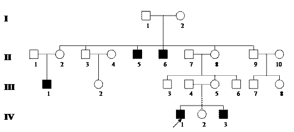 Рис. 8. Родословная семьи с У-сцепленным наследованием болезни