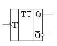 Т-триггеры используются при построении схем различных счётчиков, поэтому в составе БИС различного назначения обычно есть готовые модули этих триггеров. Условно-графическое обозначение T триггера приведено на рисунке 32.