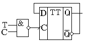 Существует еще одно представление T триггера. При разработке схем синхронных двоичных счетчиков важно осуществлять одновременную запись во все его триггеры. В этом случае вход T триггера служит только для разрешения изменения состояния на противоположное, а синхронизация производится отдельным входом "C". Подобная схема T триггера приведена на рисунке 33.