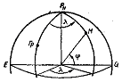 При определении места астрономическими способами наблюдатель имеет дело с линией отвеса, совпадающей с направлением силы тяжести, а не с нормалью к поверхности эллипсоида. Поэтому в астрономической системе координат широта определится как угол между плоскостью экватора и направлением отвеса в данной точке. Долгота места, определенного астрономическим способом, представляет собой двугранный угол между плоскостью начального меридиана (меридиана Гринвича) и плоскостью астрономического меридиана данной точки. Примененный термин—астрономический меридиан — надо понимать как след от сечения земной поверхности плоскостью, проходящей через отвесную линию в данной точке и параллельной оси мира. Из определения астрономических координат видно, что они в отличие от геодезических координат фиксируют положение точек относительно поверхности действительной фигуры Земли—геоида.