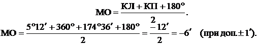 2С = 125°12¢ - 305°16¢ + 180° = -4¢ > ± 2¢ (допуск), а затем и С - коллимационную ошибку С = -2¢ > ± 1¢ (допуск).