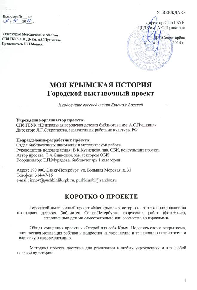 В связи с этим, СПб ГБУК «ЦГДБ им. А.С.Пушкина» обращается к детским библиотекам Санкт-Петербурга, другим учреждениям и организациям, с предложением поддержать городской выставочный проект «Моя крымская история».