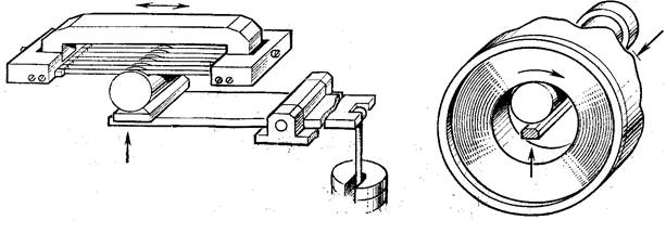 Скорость подачи алмазного круга измеряют индикатором И4-10 и секундомером, а затем сравнивают, с заданной скоростью по приборам.