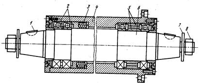 1 - сегментная шпонка, 2 - подшипники, 3 - пружина, 4 - корпус, 5 - втулка, б - вал, 7 - шайба,