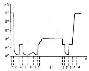 Циклограмма давлений в установке каждения слоев при пониженном давлении