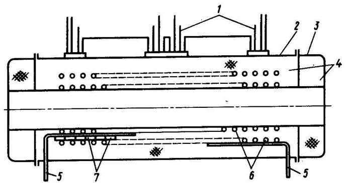 1 – рабочий канал (реактор), 2 – лампы освещения, 3 – фильтр, 4 – воздухозаборная решетка,
