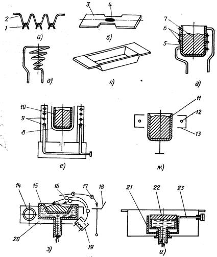 По конструктивным признакам резистивные испарители разделяют на проволочные, ленточные и тигельные.