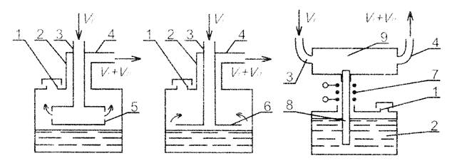 Смесители. Для смешения и гомогенизации парогазовой смеси широкое распространение получили струйные смесители. Схемы смесителей показаны на рисунках ниже а, б.