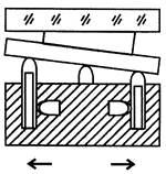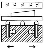 После предварительной ориентации п/п перемещается с устройством ориентации до упора в калибратор. Поднятая полупроводниковая пластина удерживается на калибраторе вакуумом. Подвижная каретка позволяет калибратору перемещаться кривошипом и шатуном по направлению в зону совмещения. Положение каретки контролируется датчиком.