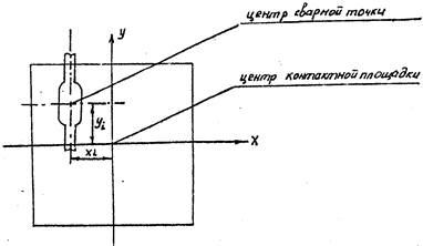 - наибольшее измеренное расстояние от центра контактной площадки до центра сварной точки по.любой из координат принять за результат проверки.