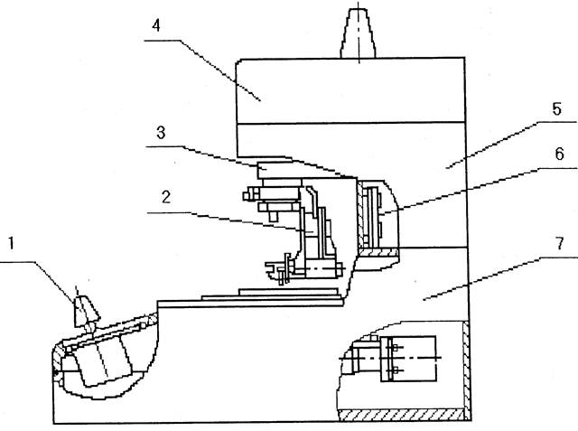 Устройство микросварки состоит из механизма поворота 3, головки сварочной 2, станины 7, пульта 1, корпуса 5, крышки 4, устройства кроссового 6.