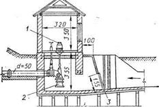 1 - электродвигатель с вертикальным валом; 2 - пропеллерный насос; 3 - решетки.