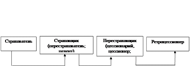 Процесс, связанный с передачей риска, называют цедированием риска или перестраховочной цессией. Страховщика, отдающего риск, называют цедентом, а принимающего - перестраховщиком, цессионером. На рис 1. представлена схема передачи страхового риска.