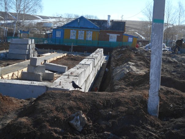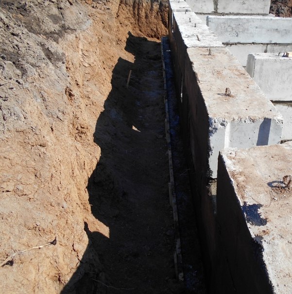 Фундаментные блоки укладывают по схеме их раскладки в соответствии с проектом, чтобы обеспечить разрывы для прокладки труб водоснабжения, канализации и других вводов.