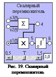 Движковый регулятор интервала времени «Т», на котором вычисляется скалярное произведение сигналов, позволяет изменять верхний предел интегрирования Т в интеграторе в диапазоне от 0,5 до 1,5 мс. Установленное значение этого интервала указывает расположенный рядом цифровой индикатор.